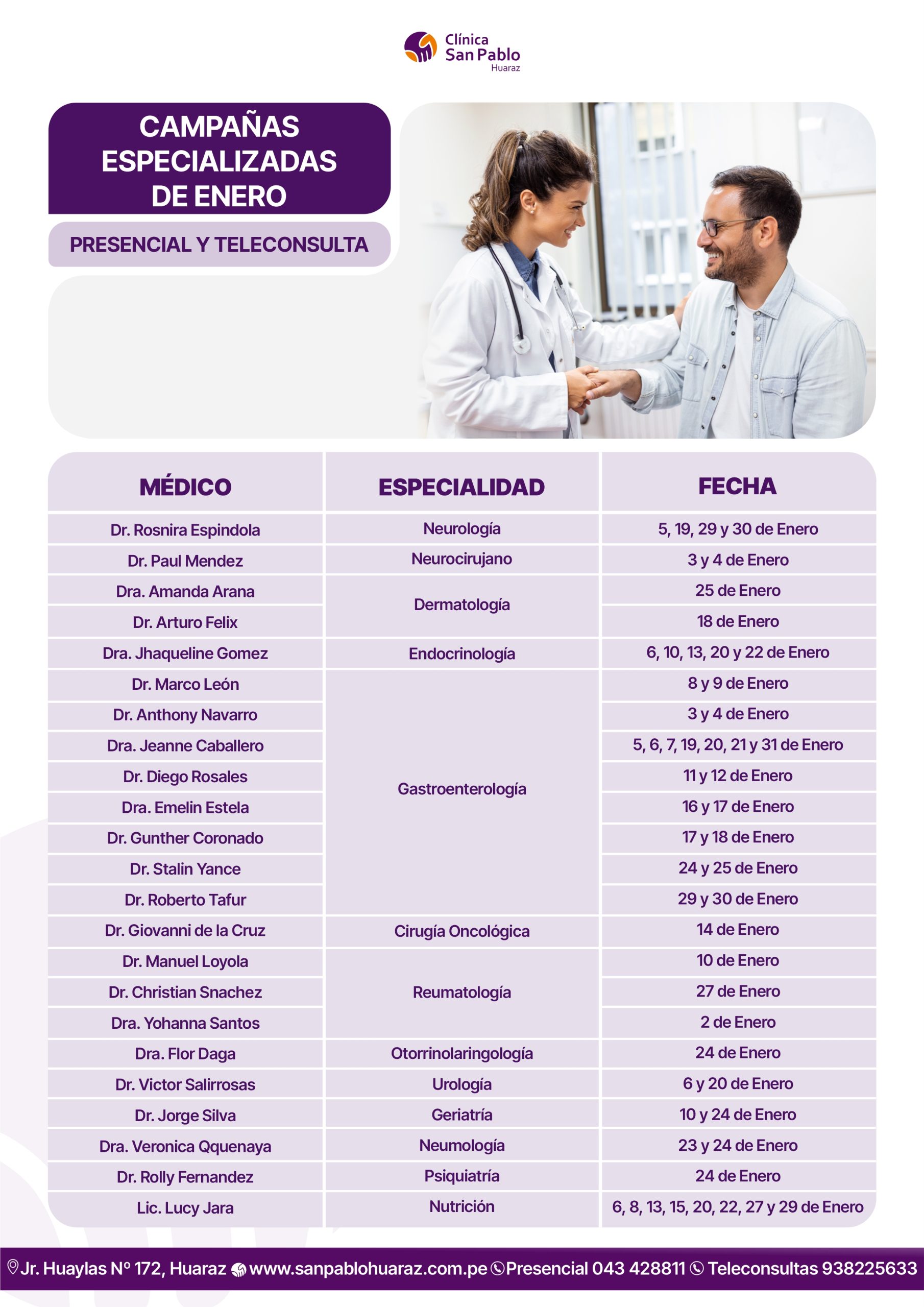 En la Clínica San Pablo Huaraz, parte de la Red de Clínicas San Pablo, llevamos 24 años de experiencia, ofreciendo un servicio de calidad y seguridad a todos nuestros pacientes, de la mano de un reconocido staff médico y una infraestructura de primer nivel.